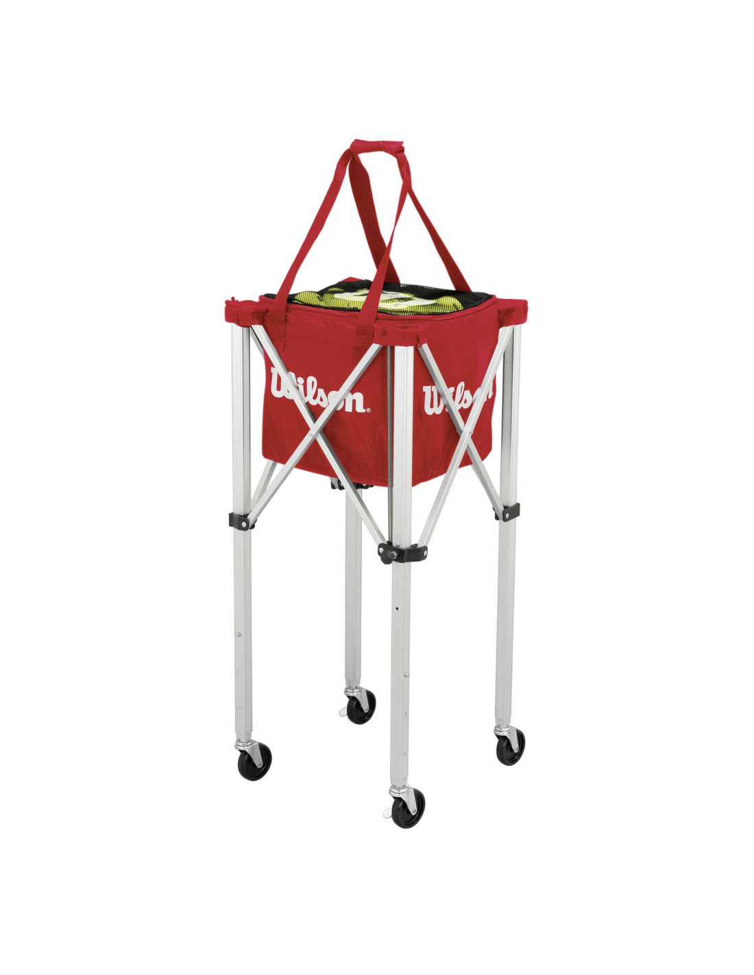 El carro de pelotas Wilson con ruedas es la solución práctica para entrenos y clases: capacidad hasta 150 pelotas, acceso rápido durante la sesión y bolsa con cremallera para transportarlas sin que se salgan. El carro es plegable, así que se guarda fácil al terminar.